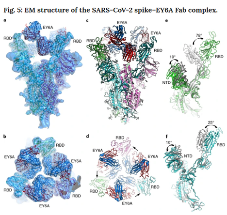 Anticorpos monoclonais contra SARS-CoV-2 podem fornecer uma opção importante de tratamento da COVID-19, especialmente em populações mais vulneráveis. Neste trabalho, foram identificados anticorpos potentes ligados à proteína spike do SARS-CoV-2 de pacientes convalescentes de COVID-19. Entre eles, o P4A1 que interage diretamente e cobre a maioria dos Receptor Binding Motif do RBD da spike, mostrado pela análise de estrutura complexa de alta resolução. Demonstram ainda as atividades de ligação e neutralização do P4A1 contra o tipo selvagem e as proteína S mutantes ou pseudovírus. O P4A1 foi posteriormente projetado para reduzir o risco potencial de aprimoramento dependente de anticorpos da infecção e estender sua meia-vida. O anticorpo projetado exibe um perfil farmacocinético e de segurança otimizado e resulta em liberação viral completa em um modelo de macaco rhesus de COVID-19 após uma única injeção. Esses dados sugerem seu potencial contra doenças relacionadas ao SARS-CoV-2 (11/05/2021). Fonte: Nat Commun