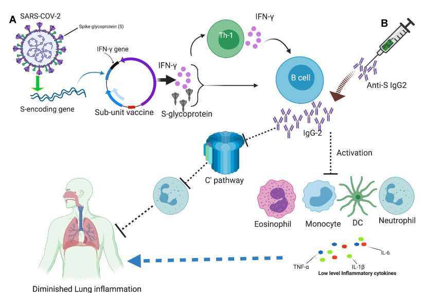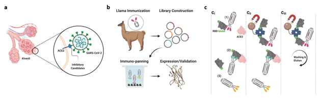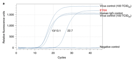 Para desenvolver anticorpos anti-SARS-CoV-2 neutralizantes humanos, bibliotecas de genes de anticorpos de pacientes convalescentes COVID-19 foram construídas e fragmentos de anticorpos recombinantes (scFv) contra o domínio de ligação ao receptor (RBD) da proteína spike foram selecionados por exibição de fago. O anticorpo STE90-C11 mostra um subnanômetro IC50 em um ensaio de neutralização de SARS-CoV-2 vivo baseado em placa. A eficácia in vivo do anticorpo é demonstrada no hamster sírio e no modelo de camundongo da enzima conversora de angiotensina humana 2 (hACE2). A estrutura cristalina do Fab STE90-C11 no complexo com SARS-CoV-2-RBD mostra que o anticorpo se liga na mesma região que ECA2 para RBD. A ligação e inibição de STE90-C11 não são bloqueadas por muitas mutações RBD emergentes conhecidas. IgG1 humana derivada de STE90-C11 com Fc silenciado por FcγR (COR-101) está passando por ensaios clínicos de Fase Ib / II para o tratamento de COVID-19 moderado a grave (13/07/2021). Fonte: Cell Reports
