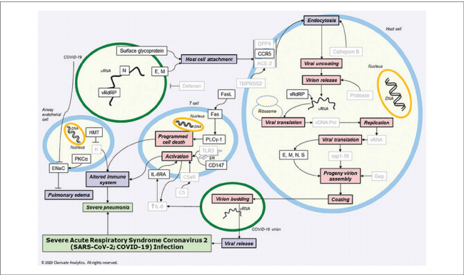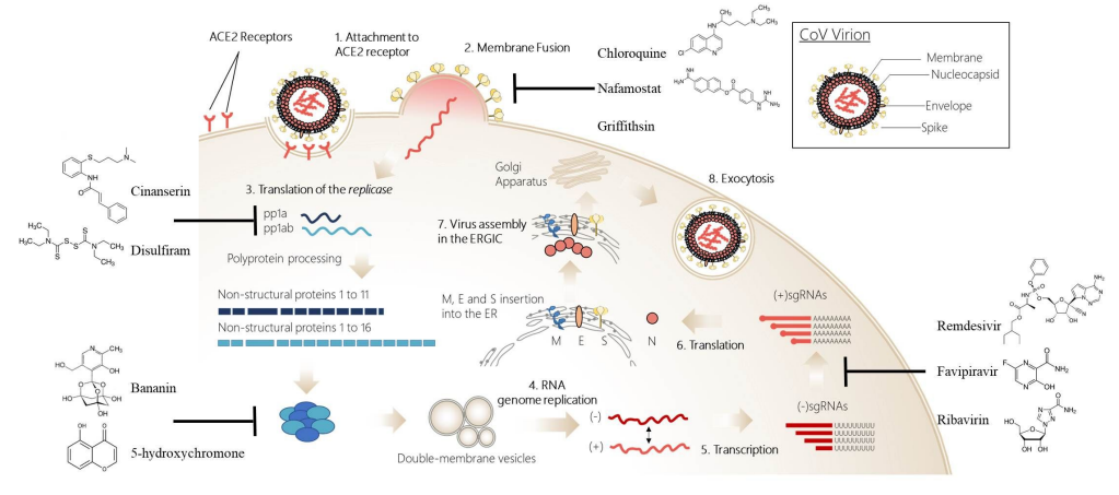 O conhecimento relacionado ao SRAS-CoV-2 tem aumentado rapidamente, o que fornece um número significativo de potenciais alvos para fármacos. O artigo de revisão do JAMA discute vários tratamentos experimentais para COVID-19, mas ainda não há um tratamento eficaz para a doença (13/04/20). Fonte: JAMA