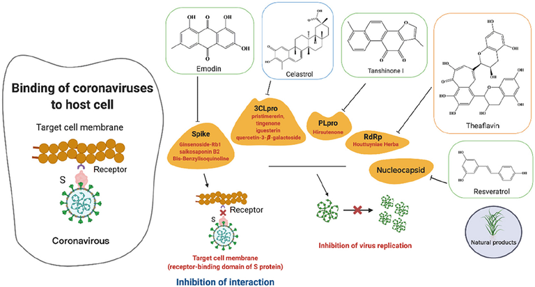 Estudo demonstra que o vírus entra em humanos pela ligação de sua proteína Spike (S) ao receptor ECA presente na superfície das células epiteliais do pulmão, seguido pela clivagem da proteína S pela serina protease transmembrana celular (TMPRSS2). Após a entrada, o genoma do RNA do SARS-CoV-2 é liberado no citosol, onde captura o maquinário de replicação do hospedeiro para a replicação viral, montagem e liberação de novas partículas virais. Os principais alvos de fármacos que foram identificados para SARS-CoV-2 por meio de estudos de interação hospedeiro-vírus incluem 3CLpro, PLpro, RNA polimerase dependente de RNA e proteínas S. Vários relatórios de compostos naturais junto com produtos sintéticos exibiram resultados promissores e alguns deles são Tripterygium wilfordii, Pudilan Xiaoyan Líquido Oral, derivados de saponina, Artemisia annua, Glycyrrhiza glabra L., grânulos de Jinhua Qinggan, Xuebijing e Própolis. Esta revisão tenta divulgar os produtos naturais identificados como anti-SARS-CoV-2 com base na previsão in silico e no efeito de uma variedade de fitoquímicos sozinhos e / ou em combinação com tratamentos convencionais, juntamente com seus possíveis mecanismos moleculares envolvidos para a prevenção e tratamento da doença SARS-CoV-2 (16/06/2021). Fonte: Phytotherapy Research