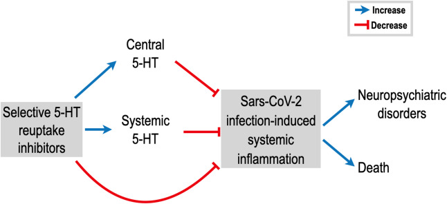 A fluvoxamina é um inibidor seletivo da recaptação da serotonina, bem tolerado, amplamente disponível e barato que foi demonstrado em um pequeno estudo duplo-cego, controlado com placebo, randomizado, para prevenir a deterioração clínica de pacientes com COVID-19. A fluvoxamina também é um agonista do receptor sigma-1, por meio do qual controla a inflamação. Neste artigo, pesquisadores revisam importantes mecanismos de ação da fluvoxamina e outros ISRSs que podem desempenhar um papel no tratamento da COVID-19. Esses efeitos incluem: redução na agregação plaquetária, diminuição da degranulação dos mastócitos, interferência com o tráfego viral endolisossômico, regulação da inflamação induzida pela enzima 1α que requer inositol e aumento dos níveis de melatonina, que coletivamente têm um efeito antiviral direto, regulam a coagulopatia ou mitigam a tempestade de citocinas, que são marcas conhecidas de COVID-19 grave (20/04/2020). Fonte: Frontiers in Pharmacology