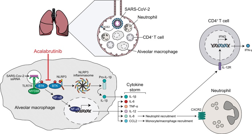 Estudo indica a prevenção da pneumonia induzida por COVID-19 com terapia anticitocinas. Bloqueadores de citocinas, como infliximabe, adalimumabe (fator de necrose antitumoral [TNF]) e ustquinumabe (anti-interleucina [IL] -12 / IL-23 [subunidade p40]), estão sendo usadas com sucesso para induzir e manter a remissão (06/04/2020). Fonte: Lancelet