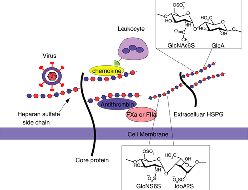 Os pesquisadores avaliaram as interações de versões recombinantes da proteína spike com linhas de células epiteliais humanas que expressam níveis baixos / muito baixos de ECA2 e TMPRSS2 em um ensaio proxy para interação com células hospedeiras. Uma forma marcada da proteína spike contendo as regiões S1 e S2 ligadas de uma maneira dependente da temperatura a todas as linhas celulares, enquanto a região S1 sozinha e o domínio de ligação ao receptor (RBD) interagiram apenas fracamente. A proteína Spike é associada a células independentemente de ECA2 e TMPRSS2, enquanto RBD exigia a presença de altos níveis de ECA2 para interação. Como a proteína spike demonstrou anteriormente se ligar à heparina, um glicosaminoglicano solúvel, os pesquisadores testaram os efeitos de várias heparinas na interação da proteína spike independente da ECA2 com as células. A heparina não fracionada inibiu a interação da proteína spike. Dos resultados os glicosaminoglicanos sulfato de heparina e sulfato de dermatana, mas não o sulfato de condroitina, também inibiram a ligação da proteína spike, indicando que ela pode se ligar a um ou ambos os glicosaminoglicanos na superfície das células-alvo (07/06/2021). Fonte: Cell