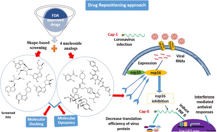 Objetivo do estudo é reposicionar as moléculas aprovadas FDA por meio de um projeto de medicamento auxiliado por computador contra Mpro (PDB ID: 6Y2F) de SARS CoV-2 devido à sua alta resolução de raios-X de 1,95 Å em comparação a outras estruturas M publicadas. Simulações de dinâmica molecular foram realizadas para verificar a estabilidade estrutural geral, flutuações Cα e interações proteína-ligante. Análise de trajetória foi realizada para avaliar a qualidade de ligação, explorando a correlação cruzada de movimento de resíduo de proteína e energia livre de ligação (MM/GBSA). Os pesquisadores citaram que os fármacos Nelfinavir, Lopinavir e Ritonavir, mostraram inibição significativa em estudos in vitro e que o Tenofovir e a Terlipresssina também podem apresentar inibição da protease, mas ainda estão abertos para validação clínica no caso do tratamento com SARS-CoV 2 (13/05/2021). Fonte: Journal of Biomolecular Structure and Dynamics