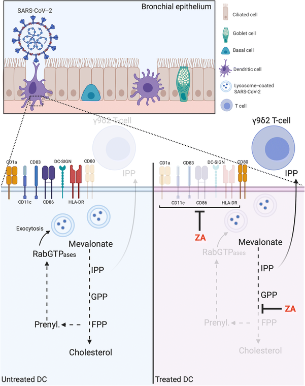 Artigo descreve o composto diamidobenzimidazol, diABZI-4, que ativa o STING e se mostrou altamente eficaz em limitar a replicação SARS-CoV-2 em cultura de células e animais. O artigo demonstra que a ativação de uma resposta imunológica precoce terapeuticamente com uma única dose é uma estratégia promissora para controlar o vírus, incluindo a variante sul-africano B.1.351. O diABZI-4 inibiu a replicação SARS-CoV-2 em células epiteliais pulmonares e a administração de diABZI-4 intranasal antes ou mesmo após a infecção pelo SARS-CoV-2 conferiu proteção completa contra doenças respiratórias graves em camundongos K18-ACE2-transgênicos infectados com SARS-CoV-2. O diABZI é identificado como um agonista de STING (um simulador de genes de interferon) e esta em fase de testes clínicos no tratamento de alguns tipos de câncer. A administração intranasal de diABZI-4 induziu uma rápida ativação de curta duração do STING, levando à produção transitória de citocinas pro-inflamatórias e ativação de linfócitos no pulmão associada à inibição da replicação viral. O estudo apoia o uso do diABZI-4 como uma terapia que mobiliza defesas antivirais para o tratamento e prevenção do COVID-19 (18/05/2021). Fonte Science Immunology