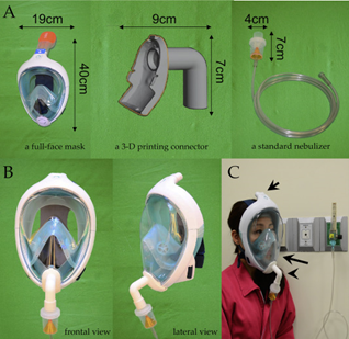 Em carta para o editor pesquisadores citam que a orientação atual para o manejo de pacientes com infecção por COVID-19 sugere que uma sala com fluxo de ar negativo é preferida durante o tratamento de nebulização com aerossol e que médicos e enfermeiras devem usar batas, luvas, respiradores N95 e proteção para os olhos. Os pesquisadores citaram que, embora um inalador dosimetrado possa ter um menor efeito de disseminação do aerossol, seu uso para pacientes com dificuldade respiratória é geralmente limitado. Assim, os pesquisadores relataram que desenvolveram uma nova máscara reutilizável para pacientes com infecção respiratória que pode prevenir a possível disseminação do aerossol durante o tratamento de nebulização (janeiro/2021). Fonte: Journal of the Formosan Medical Association