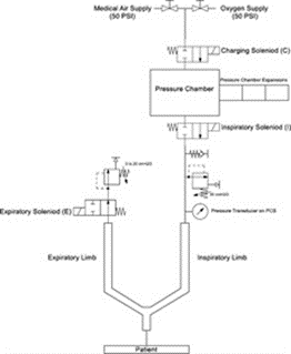 Estudo projeta um ventilador com os seguintes critérios: 1) componentes padrão que sejam acessíveis ao público, 2) compatibilidade de "código aberto" para permitir que qualquer pessoa recrie facilmente o sistema, 3) capacidade de ventilar em síndrome da angústia respiratória aguda e 4) menor custo possível para fornecer oxigenação e ventilação adequadas. O projeto básico envolve três válvulas solenóides controladas eletricamente, uma câmara de pressão, o circuito de respiração do paciente, uma válvula de pressão expiratória final positiva e um sistema de controle eletrônico. Vários elementos de segurança foram integrados ao design. A interface amigável permite o controle simples das configurações do ventilador. O ventilador fornece uma forma híbrida de ventilação pneumática com controle assistido, com volumes correntes previstos de 300–800 mL, pressão expiratória final positiva de 0–20 cm H2O e Fio2 de 21–100% (02/12/2020). Fonte: Critical Care Explorations