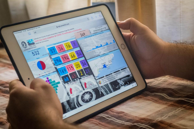 O Hospital Universitário Clementino Fraga Filho (HUCFF/UFRJ) desenvolveu um painel de indicadores para o monitoramento dos casos atendidos pela unidade durante a pandemia da COVID-19, doença provocada pelo novo coronavírus. Acesse a página aqui. O painel é atualizado automaticamente a cada três horas por meio de ferramentas digitais de automação desenvolvidas pela Coordenação de Informática e Rede (CIR) do HUCFF. A fonte de dados do dashboard é o sistema de informação para vigilância epidemiológica da COVID-19 (VisualizaCOVID-19), também desenvolvido pela CIR, que permite a sinalização dos casos suspeitos de COVID-19 no prontuário eletrônico (ProntHU), a notificação ao Sistema Nacional de Vigilância Epidemiológica (SVS-SUS) e o monitoramento desses casos até a alta hospitalar (27/05/2020). Fonte: UFRJ