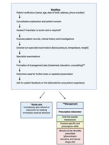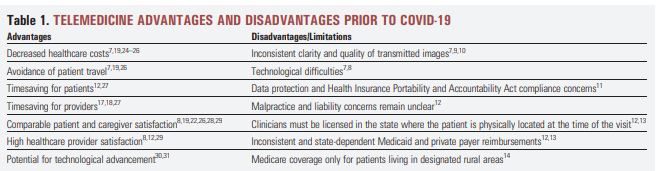 Os autores discutem o rápido avanço do uso da telemedicina durante a pandemia pela COVID-19. Diferentes especialidades passaram a fazer uso de ferramentas virtuais para o atendimento, incluindo geriatria, dermatologia, ortopedia, câncer urológico, pacientes emergenciais de cólon e retal, entre outras com foco nos atendimentos primários. Vários protocolos foram criados, incluindo triagem, check-in eletrônico, pedidos e documentação padrão, análise de dados em tempo real. (14/05/2020) Fonte: Telemedicine and e-Health
