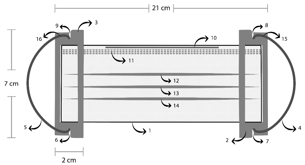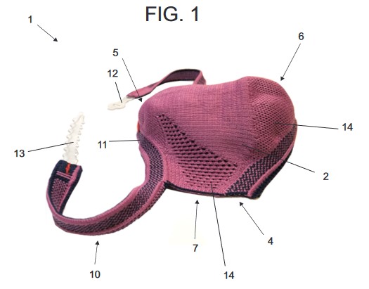 Em 17 de agosto de 2021 foi admitido o trâmite prioritário do pedido de patente de modelo de utilidade n° BR202021007944-0 da empresa brasileira FIBER TECIDOS TÉCNICOS LTDA (BR/RS) por se tratar de tecnologia relacionada à covid-19, tendo sido publicado em 13 de julho de 2021. O pedido refere-se a um suporte (1) para estruturação do filtro (2) descartável utilizado em máscara (4) sem costura com tecido duplo moldado em peça única, o qual utiliza o princípio da deformação decorrente de diferenças dimensionais entre a superfície (6) de contorno geométrico predominantemente triangular plano inicial, para o contorno nasalar (19) quando da sua inserção no casulo (3), igualmente de contorno geométrico predominantemente triangular e de menor dimensão, resultando na geração de um volume interno favorável à respiração. O pedido de patente está pendente de decisão, aguardando o início do exame técnico no INPI.