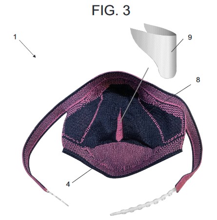 O pedido de patente de invenção n° BR 102020011718-1 da empresa brasileira ADECORE COMERCIO DE TECIDOS PERSONALIZADOS LTDA. foi publicado em 21 de dezembro de 2021. O pedido de patente refere-se a uma disposição construtiva de uma máscara facial do tipo que é empregada para cobrir a região do nariz e boca do usuário (humano), principalmente em aplicações hospitalares. A presente máscara compreende inicialmente um bojo anterior, dotado de alças laterais, e compreende uma primeira camada externa anterior constituída de tecido de poliéster, em cuja face posterior é aderida integralmente uma camada de TNT (tecido não tecido de polipropileno). Sendo compreendida também uma segunda estrutura, disposta de modo espelhado, posteriormente à primeira estrutura, compreendendo uma camada externa posterior constituída de tecido de poliéster, em cuja face anterior é aderida integralmente uma camada de TNT (tecido não tecido de polipropileno), formando a referida segunda estrutura única e cooperante. Sendo que, ambas as estruturas são unidas entre si por meio de suas bordas perimetrais, de modo que assim, as faces externas de ambas as camadas de TNT e permaneçam dispostas de fronte uma a outra, conservando um espaço livre entre ambas. O pedido de patente está pendente de decisão, aguardando o início do exame técnico no INPI.