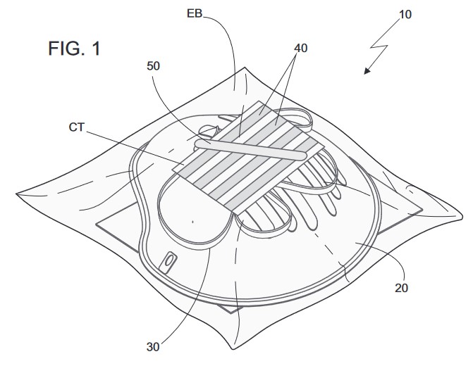 O pedido de patente de invenção n° BR 112022023317-5 da empresa japonesa DAIO PAPER CORPORATION foi publicado em 18 de abril de 2023. O pedido de patente refere-se a uma porção de gancho de orelha para máscara e seu método de fabricação. Trata-se de um laço de orelha para máscara, de acordo com a presente invenção, que é formado de um material que inclui um membro extensível; um primeiro material laminar de superfície e um segundo material laminar de superfície que são ligados, com múltiplas sessões de ligação, a ambas superfícies do membro extensível no estado em que o membro extensível é estendido. O laço de orelha para máscara inclui: uma sessão de base a ser fixada ao corpo de máscara; uma sessão de parte posterior de orelha a ser posicionada na parte posterior de orelha do utente; uma sessão de transição superior que se estende a partir da sessão de base em direção à sessão de parte posterior de orelha no lado superior e uma sessão de transição inferior que se estende a partir da sessão de base em direção à sessão de parte posterior de orelha no lado inferior. O número de múltiplas sessões de ligação por unidade de área na sessão de parte posterior de orelha é maior que o número de múltiplas sessões de ligação por unidade de área em pelo menos uma dentre a sessão de transição superior e a sessão de transição inferior. O pedido de patente está pendente de decisão, aguardando o início do exame técnico no INPI.