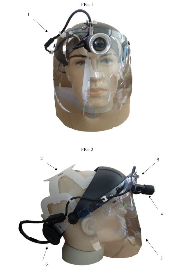 O pedido de patente de modelo de utilidade n° BR202020009983-9 do brasileiro RONALDO INOCENCIO DE OLIVEIRA foi publicado em 30 de novembro de 2021. O presente pedido refere-se equipamento para alocar todos os instrumentos acoplados e necessários para a iluminação local e focal por parte de um profissional médico otorrinolaringologista, minimizando sua dependência de enfermeiras, auxiliares e atendentes. Para tanto, o equipamento é sustentado por aste de policloreto de vinila (PVC) de fixação na cabeça (2), Proteção individual contra respingos líquidos em material policarbonato transparente flexível (3), lâmpada de Light Emitting Diode (LED) com ajuste de foco (4), catraca com ajuste de regulagem de altura (5) e bateria portátil 5000mAh com autonomia de 6 (seis) horas (6), independente da tomada elétrica podendo ser trazido junto ao profissional para atendimento. O equipamento colabora com o médico sendo um produto de proteção individual, o mesmo protege das gotículas e respingos tornando o procedimento mais seguro. O pedido de patente está pendente de decisão, aguardando o início do exame técnico no INPI.