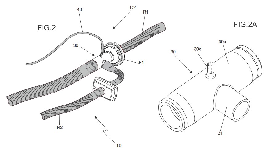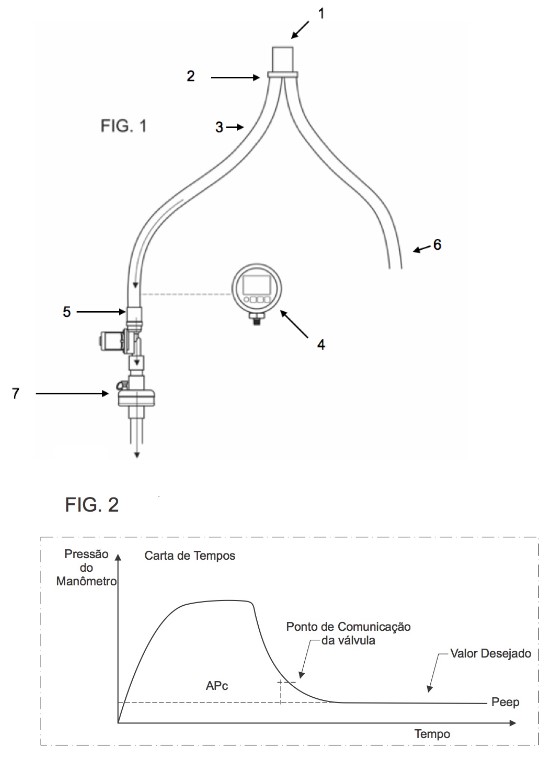 O pedido de patente de invenção n° BR 112022022449-4 das empresas italianas OSPEDALE SAN RAFFAELE S.R.L. e POLITECNICO DI MILANO foi publicado em 03 de janeiro de 2023. O pedido de patente refere-se a um aparelho (1) autônomo de pressão positiva contínua em vias aéreas para contrastar a insuficiência respiratória de um paciente, compreendendo uma máscara facial (10) para fornecer ar pressurizado contínuo às vias aéreas do paciente, e um dispositivo eletromecânico (20) possuindo um invólucro (22) direta e rigidamente conectável à máscara facial (10) para fornecer ar à dita máscara facial (10) a um valor de pressão controlado, sendo o dispositivo eletromecânico (20) compreendendo um canal pneumático (24) para fluxo do ar a ser fornecido à máscara facial (10) e uma unidade de controle (26) para gerenciar automaticamente o valor da pressão do ar dentro do canal pneumático (24), em que, o aparelho (1) compreende um ventilador de turbina (28) conectado à unidade de controle (26) e localizado no invólucro (22) do dispositivo eletromecânico (20) para pressurização do ar atmosférico a um valor de nível de pressão determinado, e, em que, o canal pneumático (24) inclui uma porção de entrada (241) localizada a montante do ventilador de turbina (28) para receber ar atmosférico, e uma porção de saída (242) localizada a jusante do ventilador de turbina (28) para fornecer o ar pressurizado à máscara facial (10) através de uma abertura de saída (21), sendo que o canal pneumático (24) longitudinalmente se estende da dita porção de entrada (241) para dita porção de saída (242). O pedido de patente está pendente de decisão, aguardando o início do exame técnico no INPI.