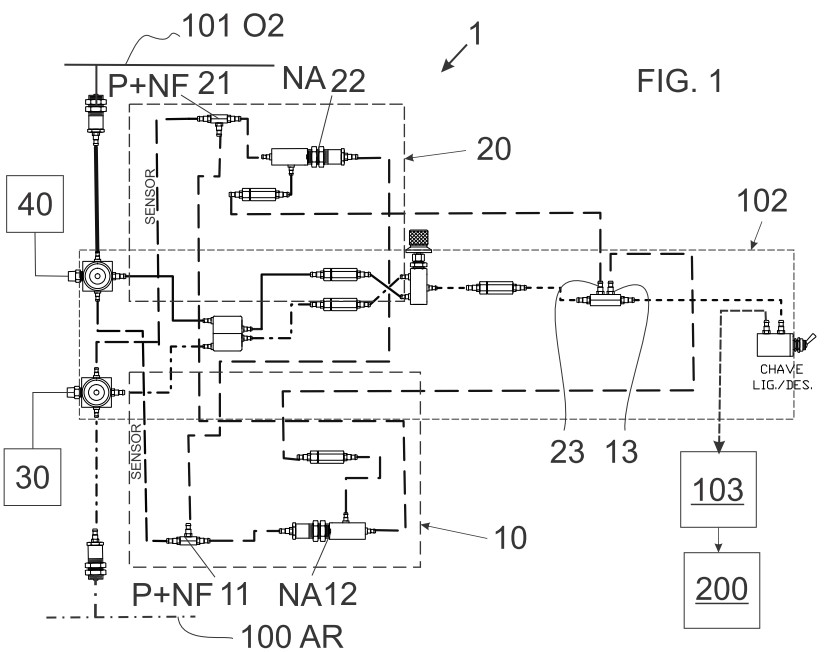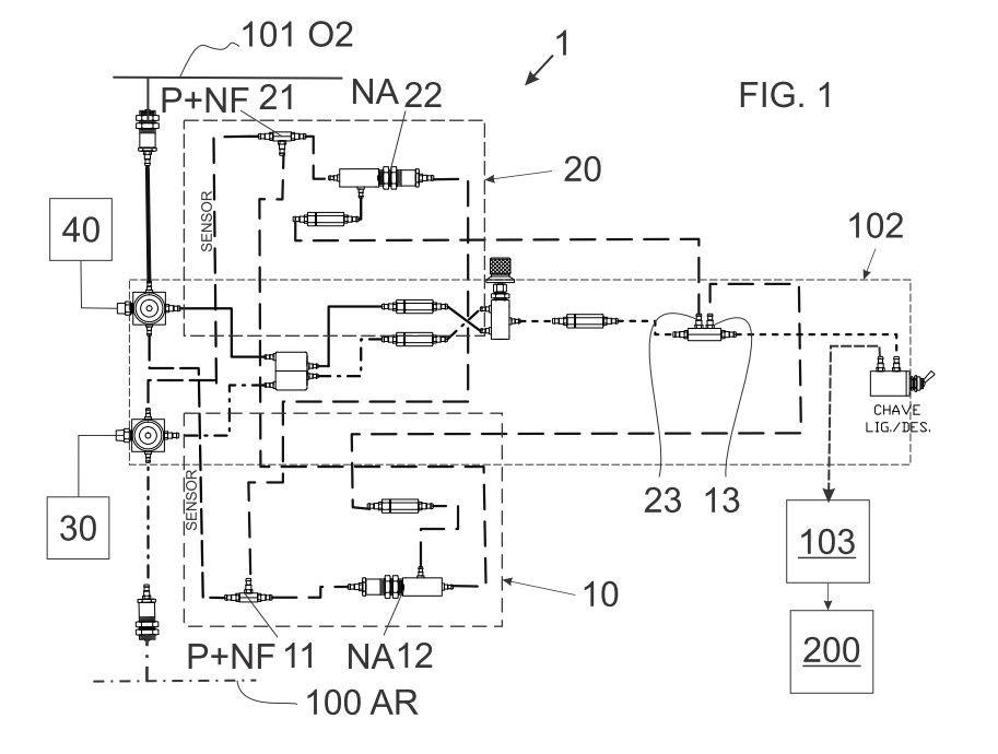 O pedido de patente de invenção n° BR 102020026513-0 do brasileiro ANTÔNIO ROBERTO FRANCO DE LIMA foi publicado em 05 de julho de 2022. O pedido de patente refere-se a um sistema de segurança para ventilador pulmonar. O presente pedido de patente de invenção refere-se a sistema de segurança para ventilador pulmonar, pertencente ao setor técnico dos equipamentos de uso médico, estes fazendo parte de sistema formado: por linha de Ar; por linha de Oxigênio; por uma pluralidade de conjuntos de equipamentos de uso médico, cada conjunto formado: por misturador; e por equipamento de uso médico ligado às vias respiratórias de um paciente , dito sistema de segurança (1) formado por dois circuitos pneumáticos iguais, paralelos e interligados, que colaboram com o misturador: primeiro circuito pneumático (10) de monitoração da linha de ar e de suprimento de oxigênio quando a linha de ar deixa de funcionar em caso de pane; segundo circuito pneumático de monitoração da linha de oxigênio e de suprimento de ar quando a linha de oxigênio deixa de funcionar em caso de pane; ditos circuitos pneumáticos (10) e (50) baseados em válvula de segurança NA (11) e válvula de segurança NA (51), respectivamente, as quais são normalmente abertas quando despressurizadas e normalmente fechadas quando pressurizadas. O pedido de patente está pendente de decisão, aguardando o início do exame técnico no INPI.