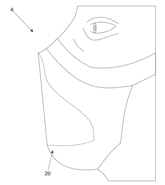 O pedido de patente de modelo de utilidade n° BR 202020026189-0 da empresa chinesa SHANDONG SHENGQUAN NEW MATERIALS CO., LTD. foi publicado em 28 de dezembro de 2021. O pedido de patente refere-se a uma máscara que inclui um corpo principal (1) usado para se adequar a uma face, e uma folha de tira de orelha (2) usada para pendurar nas orelhas. A parte esquerda (21) da folha de tira de orelha (2) é fixada na parte esquerda do corpo principal (1), e a parte direita (22) da folha de tira de orelha (2) é fixada na parte direita do corpo principal (1). Uma primeira costura de rasgo (10) que se estende na direção lateral e para se fixar em uma cabeça ou se pendurar em orelhas é disposta na folha de tira de orelha (2), e a primeira costura de rasgo (10) pode ser lacerada e estendida ao longo da direção longitudinal da primeira costura de rasgo (10) sob força externa. A máscara tem vantagens de integridade excelente, alta produtividade e custo inferior. O pedido de patente está pendente de decisão, aguardando o início do exame técnico no INPI.