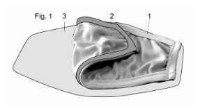 O pedido de patente de modelo de utilidade n° BR 20 2020 014101-0 dos brasileiros SILVANA MARIA AUGUSTINI e MARCOS RODRIGUES DE ANDRADE foi publicado em 18 de janeiro de 2022. O pedido de patente refere-se a uma máscara anatômica de três camadas com abas nasais. A máscara tem uma (01) face tripla da máscara, (02) abas nasais, (03) cordão ou elástico de fixação superior, (04) cordão ou elástico de fixação inferior. Na figura 1.8 pode ser visualizada uma representação das camadas triplas, (05) camada externa e interna de tecido, (06) camada interna de manta R2, a ação tecnológica da máscara se dá exclusivamente devido as camadas triplas de tecido (05) e de manta (06), criando três barreiras de proteção e, ainda, podendo ser lavável e, portanto, reutilizável, além de possuir um exclusivo filtro nasal (02) vedando ainda mais a entrada de ar. O tecido externo pode ser tanto de cores lisas como estampadas, porém, o tecido interno é de cor neutra por questões higiênicas. A máscara será disponibilizada nos tamanhos P, M, G e GG, embalada com plástico transparente, somado a um folder informando suas características e instruindo o usuário quanto ao uso. O pedido de patente está pendente de decisão, aguardando o início do exame técnico no INPI.