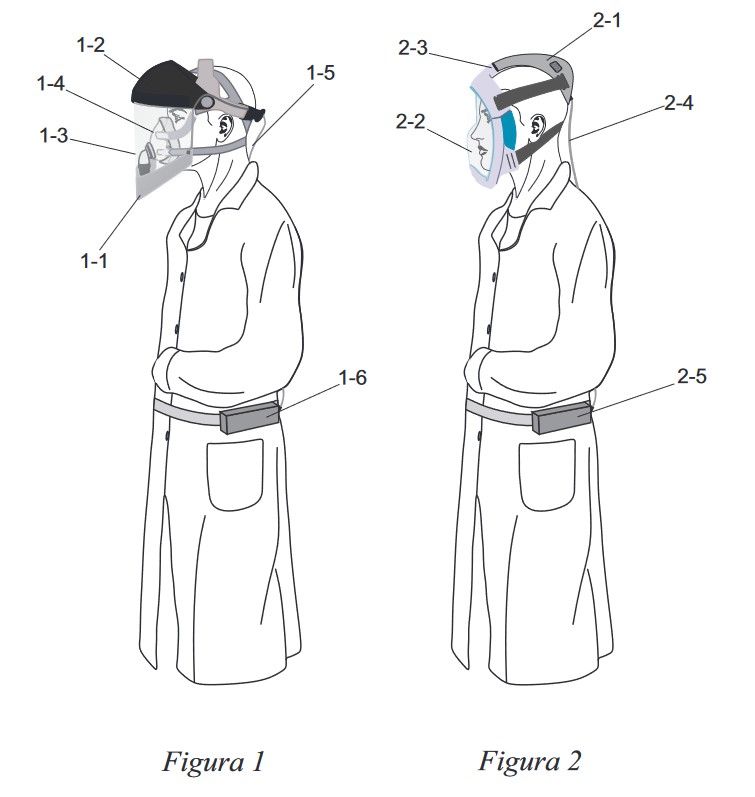 O pedido de patente de invenção n° BR 102020025684-0 do brasileiro WALLACE ROCHA DE FARIA foi publicado em 21 de junho de 2022. O pedido de patente refere-se a uma máscara de proteção respiratória com dispositivo conjugado de filtragem molecular do ar inspirado através de mecanismo de sucção e ventilação elétrico, cuja função consiste em impedir que o usuário inspire contagiantes aeróbicos ou sofra contágio ocular; proteção à saúde pessoal do usuário e retentor de contágio por disseminação; o ar ambiente será aspirado por um ventilador para dentro da caixa acopladora e a pressão exercida pela sucção fará o ar ser impelido através do elemento filtrante existente no interior da caixa e a seguir será direcionado pelas canaletas de dispersão para a face do usuário isento de qualquer partícula viral, bacteriológica ou qualquer contaminante; o ventilador será alimentado por uma bateria elétrica de lítio que em sua documentação indica o desempenho de funcionamento de no mínimo 24 horas e no máximo de 48 horas ininterruptas, exigindo que a mesma ser recarregada pelo período total de 8 horas; interruptor simples liga e desliga para acionamento do ventilador, os conectores para ligações entre os fios será o de modelo k1. O pedido de patente está pendente de decisão, aguardando o início do exame técnico no INPI.