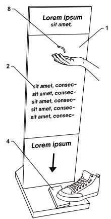 O pedido de patente de modelo de utilidade n° BR 202020011884-1 Da empresa brasileira CREATIVE DISPLAY INDÚSTRIA E COMÉRCIO LTDA (BR/SP) foi publicado em 21 de dezembro de 2021. O pedido de patente refere-se a um totem para uso interno e externo, em qualquer local com grande circulação de pessoas. Destina-se à higienização das mãos através do Álcool Gel 70° com pigmentação fluorescente, tendo uma interação junto ao usuário quando o mesmo coloca as mãos na direção da luz negra, criando assim uma experiência diferente ao usuário e até mesmo garantindo que realizou a assepsia de forma integra de suas mãos. O pedido de patente está pendente de decisão, aguardando o início do exame técnico no INPI.