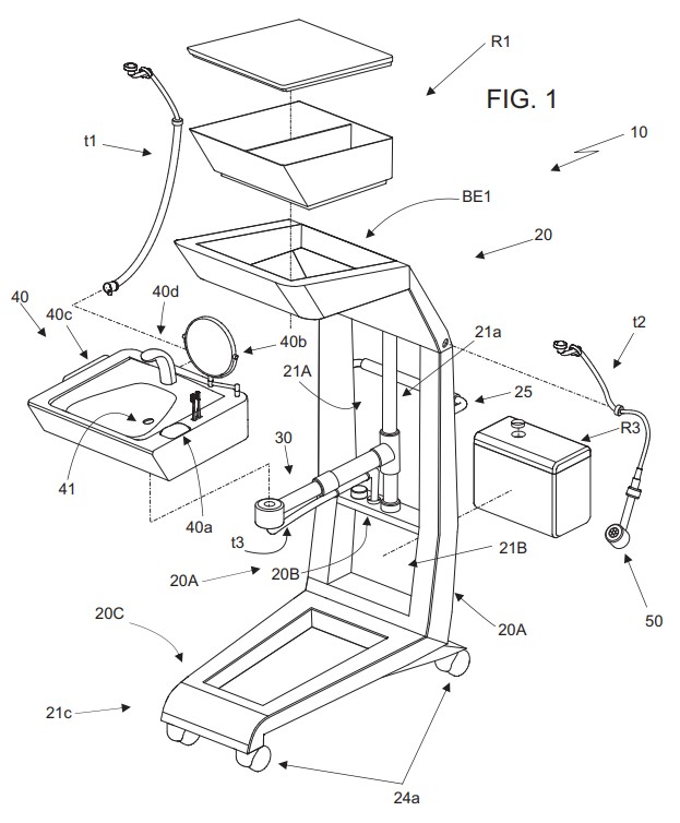O pedido de patente de modelo de utilidade n° BR 2020011253-3 do brasileiro PAULO FRANCISCO ROLO foi publicado em 14 de dezembro de 2021. O pedido de patente refere-se a um lavatório móvel (10) do tipo utilizado para higienização básica de pessoas com limitações de movimentos como idosos, pessoas em pós-operatórios, acamados, deficientes físicos entre outros, dito lavatório móvel (10) é compreendido por pedestal tubular (20) subdividido em: i) berço (BE1) para acomodação de reservatório (R1) de água potável e sustentado por um par de colunas (20A); ii) vão (21A) composto pelo espaçamento entre as colunas (20A) onde é montada uma travessa (20B) para montagem de haste de sustentação (21a) receptora do braço telescópico (30) sustentador da cuba (40); iii) nicho (21B) compreendido pela divisão do vão (21A) pela travessa (20B) para a montagem do reservatório (R3) de descartes; iv) base (20C) que se desenvolve ortogonalmente a partir da porção extrema do par de colunas (20A) e compreendida por projeção tubular (21c) ligeiramente afunilada em cujas porções extremas recebem rodízios (24a) para a movimentação do pedestal (20) até o leito (LT) paciente, o qual é auxiliado por manipulo (25) disposto próximo a porção central do par de colunas (20A) proporcionando autonomia quando da movimentação e aproximação do lavatório (10) ao leito. O pedido de patente está pendente de decisão, aguardando o início do exame técnico no INPI.