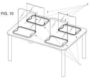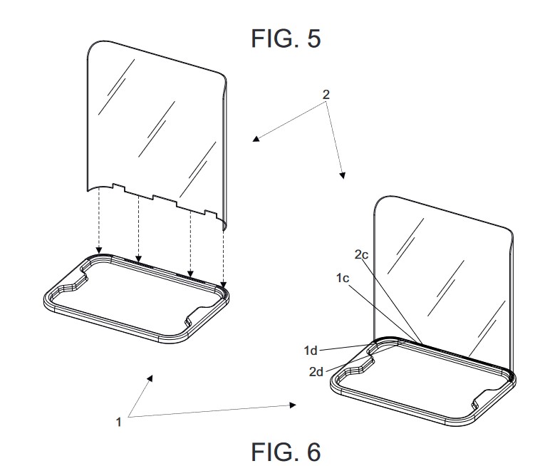 O pedido de patente de modelo de utilidade n° BR 202020013969-5 da empresa brasileira TON VISUAL COMUNICAÇÃO LTDA - EPP foi publicado em 18 de janeiro de 2022. O pedido de patente refere-se a bandeja de restaurantes e estabelecimentos similares, adaptada com protetor antivírus. Para proteção contra contaminações por partículas nocivas suspensas no ar, em ambientes de restaurantes e similares, quando as pessoas (garçons, atendentes e clientes em trânsito), transportam bandejas com pratos de serviço, talheres, copos e garrafas. Para tanto, a partir da borda frontal ou borda oposta à borda de pega da bandeja (1), a mesma sofre, por projeto de molde, entre os vértices semicirculares (1a) delimitadores da face superior de sua borda frontal (1b), sulcos (1c) alternados à trechos lisos (1d), coincidentes à borda inferior (2b) de um protetor (2) de acrílico, que alterna, entre os vértices semicirculares (2a), reentrâncias (2c) e ressaltos (2d). O protetor (2) é encaixado em ação axial no sentido vertical, nos sulcos (1c) e assentado nos trechos lisos (1d) da face lisa superior da borda frontal (1b) da bandeja (1), posicionando-se verticalmente na bandeja (1). O sulco da borda frontal (1b) da bandeja (1) entre os vértices semicirculares (1a) pode ser um sulco contínuo (1e) coincidente à borda inferior (2b), também contínua (2e) do protetor (2), o qual, igualmente, após o encaixe em ação axial, é posicionado também verticalmente na borda frontal (1a) da bandeja (1). O pedido de patente está pendente de decisão, aguardando o início do exame técnico no INPI.