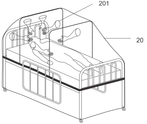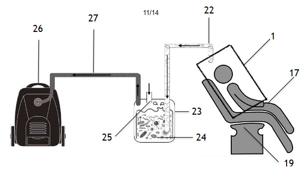 O pedido de patente de modelo de utilidade n° BR 202020019748-2 dos brasileiros SAMEL SERVICOS DE ASSISTENCIA MÉDICO HOSPITALAR LTDA (BR/AM) e TRANSIRE FABRICAÇÃO DE COMPONENTES ELETRÔNICOS LTDA (BR/AM) foi publicado em 12 de abril de 2022. O pedido de patente refere-se a um dispositivo de proteção (1), ou capsula, contra a disseminação aérea de vírus, bactérias e similares, para sobreposição a um paciente em um leito hospitalar, ou similar. O dispositivo compreende um quadro (2) de conformação paralelepipédica, com as arestas definidas a partir de tubos de PVC; uma capa (3) de conformação cooperante com a forma do dito quadro (2), dita capa (3) apta a ser disposta sobre o dito quadro (2) de modo a definir respectivas faces laterais, posterior e superior do quadro (2), bem como uma cortina (8) projetante a partir da face anterior do quadro (2); e um exaustor (10) disposto no quadro (2), de modo a gerar um diferencial de pressão no interior da capsula pela exaustão do ar no interior do dispositivo (1). O exaustor (10) compreende ainda uma ventoinha (12), e na sua porção inferior ao menos um filtro (13), de tipo HME, antiviral e antibacteriano. O pedido de patente está pendente de decisão, aguardando o início do exame técnico no INPI.