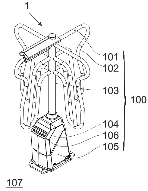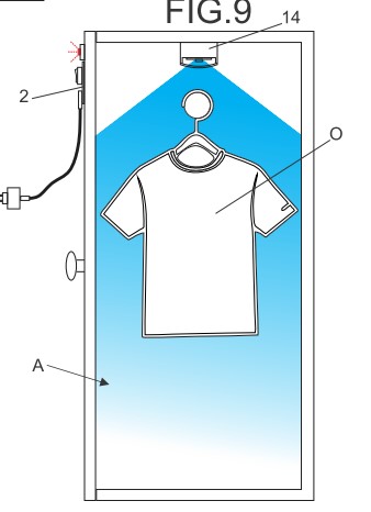 O pedido de patente de modelo de utilidade n° BR 202020016088-0 do brasileiro EDELBERT GALVÃO DUTRA (BR/SC) foi publicado em 15 de fevereiro de 2022. O pedido de patente refere-se a um dispositivo que funciona ligado na energia elétrica através da fonte, sendo acionado por um botão com LED que ativa a placa de controle, responsável por acionar o módulo da lâmpada UVC, módulo do ozonizador e o gerador de vapor em seus respectivos ciclos de funcionamento. Ao iniciar o ciclo a água será vaporizada pelo nebulizador ultrassônico, que trabalhando junto ao gerador de ozônio e à lâmpada UVC comporão os elementos sanitizantes distribuídos pelos ventiladores através da grade ou do adaptador no interior do objeto a ser higienizado. O nebulizador de vapor ultrassônico é composto pelo conjunto formato pelo depósito de água, sensor de água e gerador de vapor e só será acionado caso o sensor detecte que há água suficiente no interior do depósito. Sob o higienizador ficam localizados os pés e a grade de entrada de ar para refrigeração da placa de controle e demais componentes do dispositivo. O pedido de patente está pendente de decisão, aguardando o início do exame técnico no INPI.