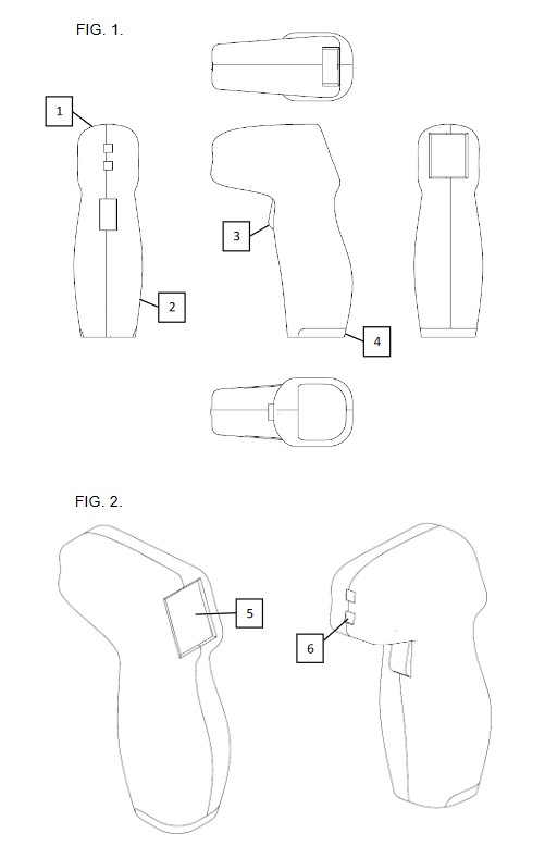 O pedido de patente de modelo de utilidade n° BR 202021007999-7 da brasileira PÂMELA GOMIDES DOS REIS GOMES teve o trâmite prioritário admitido em 29 de junho de 2021, por tratar-se se tecnologia relacionada à COVID-19, e foi publicado em 06 de julho de 2021. O pedido de patente refere-se a um oxímetro em modelagem pistola com sensor de refletância. O oxímetro em modelagem pistola é um equipamento médico da área da saúde desenvolvido com um sensor de refletância (6) que permite a aferição da saturação sanguínea na testa do paciente. Tem acionamento a partir de botão (3) na parte frontal do equipamento e desligamento programado no próprio arduino do equipamento. Diferentemente dos oxímetros de pulso de dedo, o equipamento não apresenta modelagem pregador e sim pistola/revólver (FIG. 1.) na qual facilita a assepsia e o manuseio do aferidor. O pedido de patente foi examinado e indeferido. Em 17 de maio de 2022 foi mantida a decisão de indeferimento, uma vez que a requerente não apresentou recurso dentro do prazo legal.