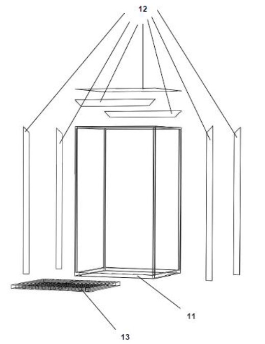 O pedido de patente de invenção n° BR 102020014589-4 da empresa brasileira HTS ELEVADORES INDÚSTRIA E COMÉRCIO LTDA foi publicado em 01 de fevereiro de 2022. O pedido de patente refere-se a um equipamento germicida (10) idealizado para desinfecção de cabina (CB) de elevador em geral como de passageiro, transporte de paciente, transporte de alimentos, entre outros; dito equipamento germicida (10) atua na desinfecção da cabina (CB) de elevadores através da eliminação de vírus, bactérias, fungos e outros, inclusive o coronavírus Covid-19; a desinfecção do ar e superfícies da cabina (CB) é realizada com a aplicação de luz de ultravioleta - UVC – (LV) por meio do acionamento intermitente da lâmpada (20) de 18W para área de até 9 m2; dito equipamento (10) opera através de sistema microprocessado (SM) para (i) acionamento/desligamento da lâmpada (20) através da leitura da ausência de passageiro(s) por meio de sensor ultrassom (s1); (ii) monitoramento de funcionamento da lâmpada (20) através de sensor de luz (s2); (iii) programação de tempo de desinfecção (TP1) da cabina (CB) por um período pré-determinado de 5 ou 10 minutos programável por uma conexão interna através de jumper quando elevador parado e sem passageiro na cabina (CB); dito equipamento (10) prevê três sinalizadores de monitoramento (SN1), (SN2) e (SN3) através de diodos emissores de luz - Led – para indicações de operações e condições. O pedido de patente está pendente de decisão, aguardando o início do exame técnico no INPI.