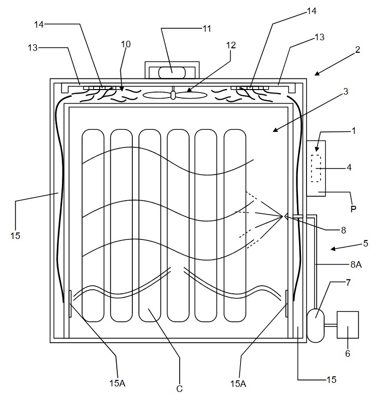 O pedido de patente de invenção n° BR 102020015904-6 da empresa brasileira PROMAFLEX INDUSTRIAL LTDA foi publicado em 15 de fevereiro de 2022. O pedido de patente refere-se DISPOSITIVO COM BARRAMENTO DE LEDS UVC PARA HIGIENIZAÇÃO E SISTEMA DE CONTROLE DE CICLO HIGIENIZADOR. Para emitir radiação UVC no interior dos ambientes (A) de freezers ou aparelhos para refrigeração de alimentos e bebidas, armários de despensa para guardar, nas suas prateleiras, compras alimentícias, para guardar produtos de limpeza, no interior de guarda-roupas para peças do vestuário em geral, enfim, para higienização desses objetos (O), especialmente peças passíveis de serem trazidas pelo usuário, para dentro de casa, seja diariamente ou periodicamente. Para tanto, de forma independente ou em um invólucro (14), uma placa de circuito eletrônico (7) integra um temporizador (8) e LEDs UVC (13), sendo fixada internamente ao ambiente (A) em cuja porta (P) é fixado, externamente, um módulo estabilizador de tensão (2) com chave liga/desliga (6) e conexão USB (3) de alimentação elétrica receptora do cabo USB (4) de carregador (5) de smartphone ou similar. Através dos LEDs (13), a emissão UVC higieniza os objetos (O), em sinalização sincronizada pelo acendimento do LED colorido (10) em um ciclo preferencial de 12 minutos. Ao final, estando a emissão interrompida automaticamente, o usuário pode retirar os objetos (O) e ligar novamente a higienização. Caso queira pode pressionar a chave liga/desliga (6) e interromper a emissão UVC para retirar objetos (O) do ambiente (A) antes do período definido para a higienização. O pedido de patente está pendente de decisão, aguardando o início do exame técnico no INPI.