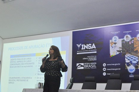 As palestras, realizadas no auditório do Instituto, foram ministradas por Tereza Cristina Gamba, presidente da Comissão de Ética do MCTI, e Paula Paes Montadon Vasconcelos, da Ouvidoria.