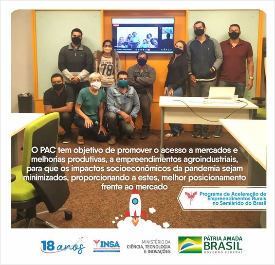 Com o objetivo de auxiliar os empreendimentos que aproveitam os potenciais e as oportunidades da Caatinga, o PAC (Programa de Aceleração de Empreendimentos Rurais no Semiárido Brasileiro) acompanha empreendimentos rurais, promovendo práticas de inovação que incluem capacitações e mentorias. O intuito é favorecer a produção e o acesso ao mercado, de modo que as práticas sustentáveis possam ser fortalecidas e os impactos da Pandemia sejam amenizados. O Programa conta com as pesquisadoras Mônica Tejo, diretora do INSA/MCTI, e Jayuri Araújo, gestora de projetos do NEI (Núcleo Estratégico do INSA), entre outros.