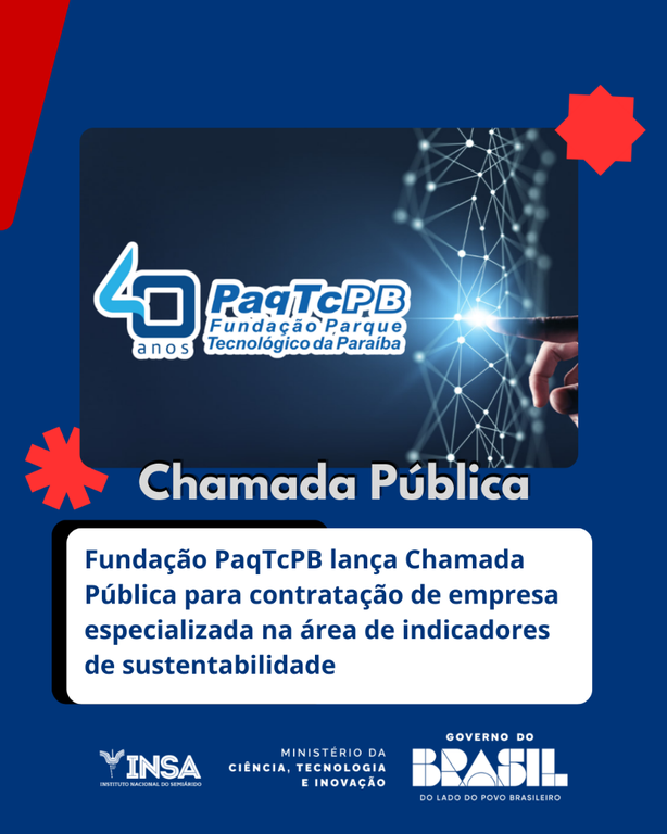 A Fundação Parque Tecnológico da Paraíba (PaqTcPB) publicou Chamamento Público para contratação de empresa especializada em mentoria na área de indicadores de sustentabilidade, no âmbito do Convênio nº 01.25.0631.00, vinculado ao projeto da Tecnologia SARA.