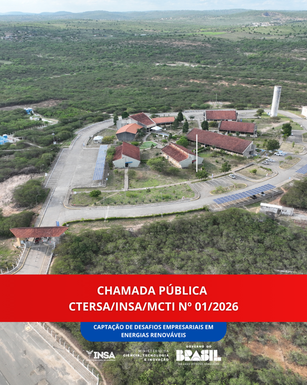 O Instituto Nacional do Semiárido (INSA/MCTI) comunica o lançamento da Chamada Pública CTERSA/INSA/MCTI Nº 01/2026, que trata da Captação de Desafios Empresariais em Energias Renováveis.
