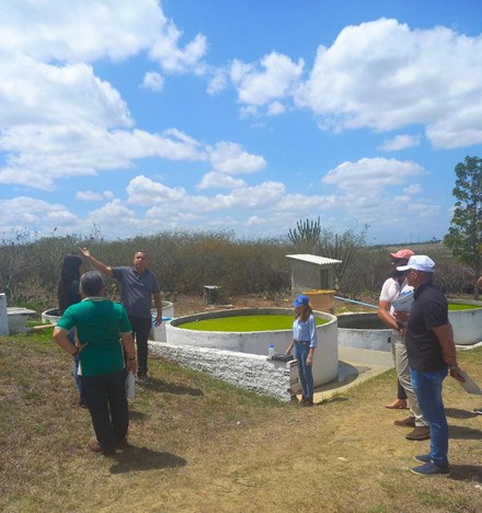 Em seguida, foi realizada a apresentação do SARA (Saneamento Ambiental e Reúso de Água), tecnologia sustentável que transforma todo o esgoto da instituição em água para reúso agrícola, por meio de processos físicos e biológicos, sem a necessidade de energia elétrica, promovendo a recuperação de água e nutrientes. O projeto faz parte da área de Recursos do INSA/MCTI, e foi apresentado pelos pesquisadores bolsistas Ailton de Carvalho, Maria das Graças, Vanessa Medeiros e Joelma Dias.