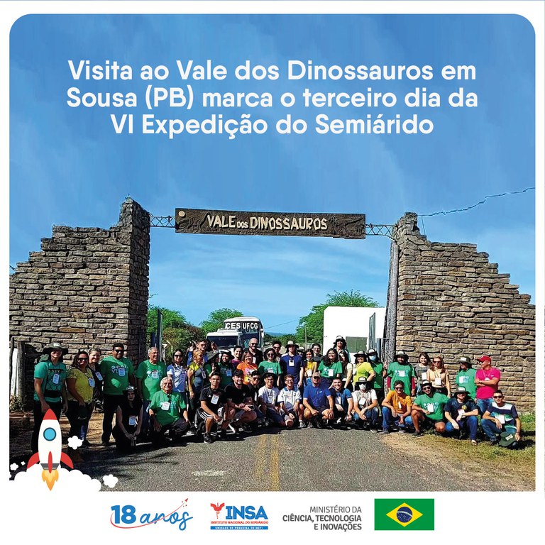 Com uma programação diversificada, o terceiro dia da VI Expedição do Semiárido passou por três municípios da Paraíba. A primeira parada dos expedicionários foi no Vale dos Dinossauros, localizado no município de Sousa. No local, os visitantes puderam conhecer o museu, que conta a história do parque e conferir os fósseis abrigados no lugar.