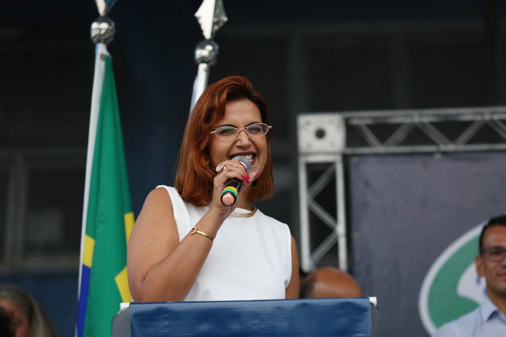 Superintendente do INSS no Estado de São Paulo, Michelle Reis Moreira, em momento de fala no evento. Foto: Carlinhos / ACS SP