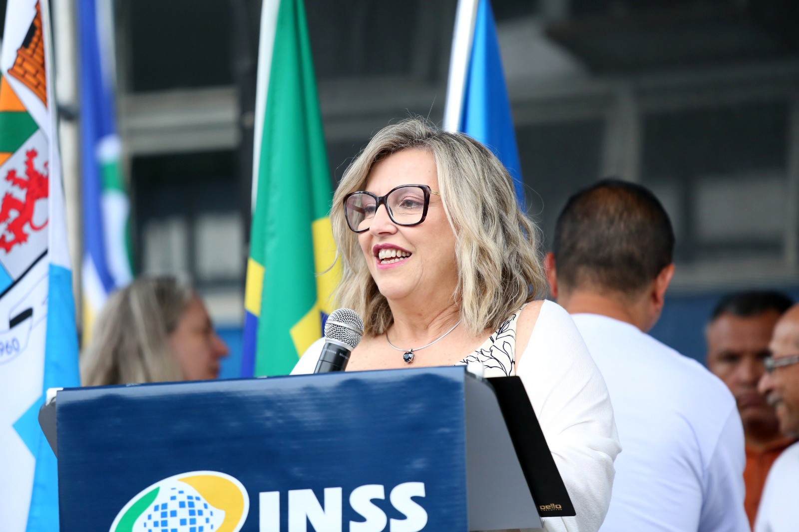 Dulce Marin, gerente-executiva do INSS no ABCD paulista, durante inauguração da APS. Foto: Carlinhos / ACS SP