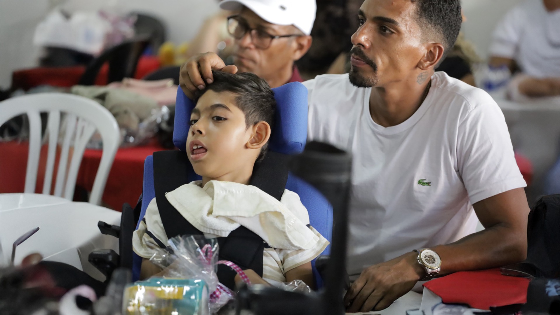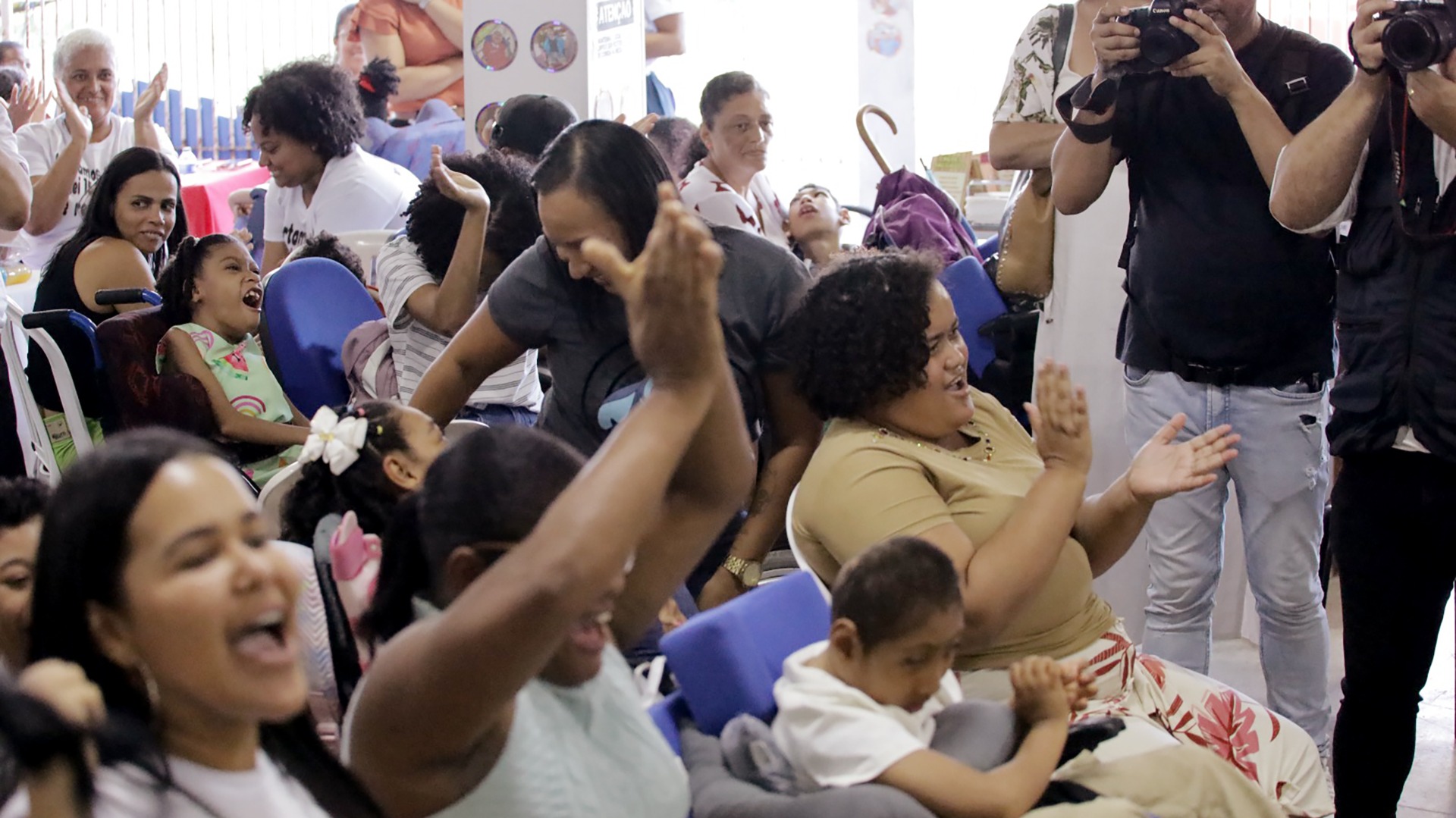 Imagem destaca a presença, no evento, de crianças afetadas pelo Zika Vírus.