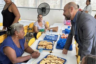 Presidente do INSS, Gilberto Waller, em momento de interação com Daiane Freitas dos Santos e filhas.