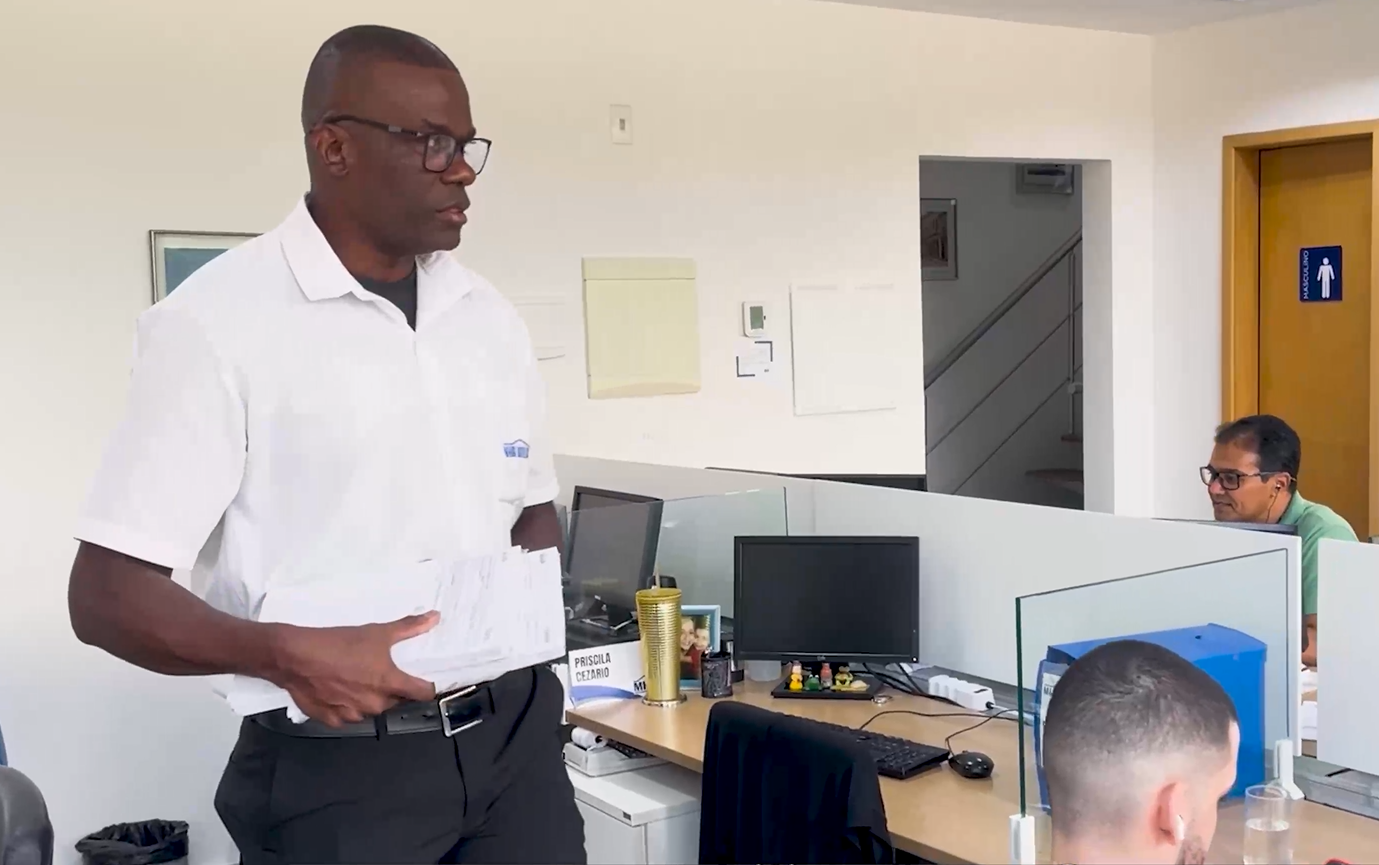 Wilson Alexandre em seu ambiente de trabalho depois de passar pelo Serviço de Reabilitação Profissional do INSS
