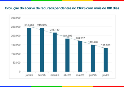 Descrição da imagem: Martelo de madeira, símbolo da justiça, está apoiado sobre uma pilha de papéis brancos. No canto superior esquerdo, aparece o emblema azul com a inscrição “Conselho de Recursos da Previdência Social” e o ano 1939, indicando contexto jurídico-administrativo.