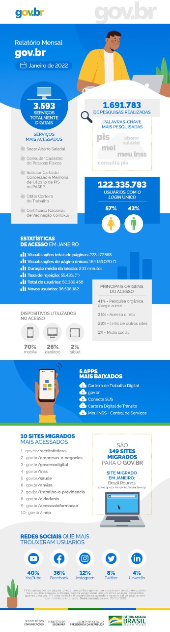 Com informações do Relatório Mensal gov.br - Janeiro de 2022