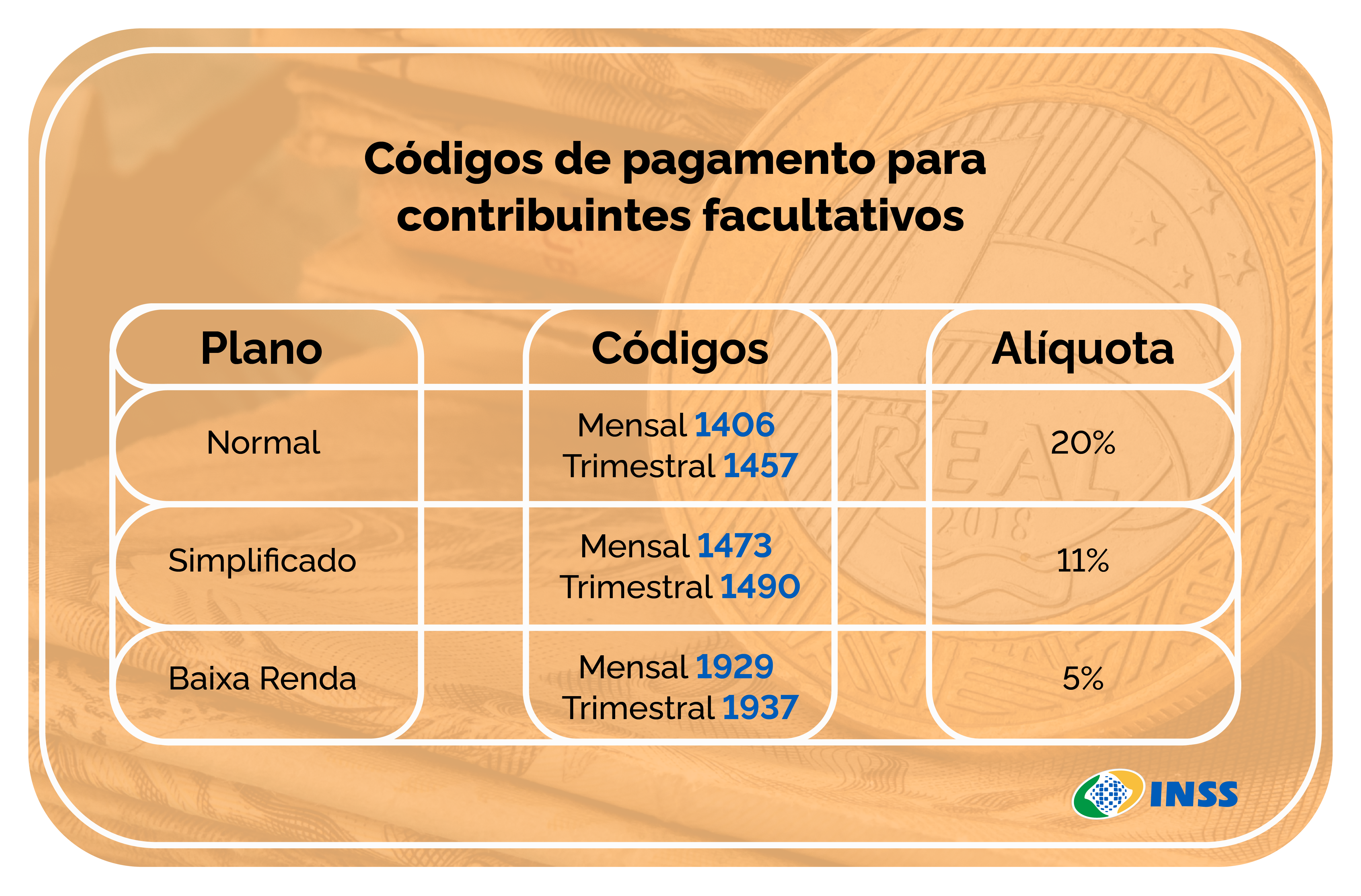 Quem vai fazer a contribuição sobre o salário-mínimo pode optar pelo plano simplificado, que tem alíquota reduzida de 11%. Os segurados facultativos de baixa renda podem ter uma redução ainda maior no percentual (5%). Para ser considerado baixa renda, o cidadão deve estar inscrito no Cadastro Único (CadÚnico) e ter renda familiar de até dois salários.