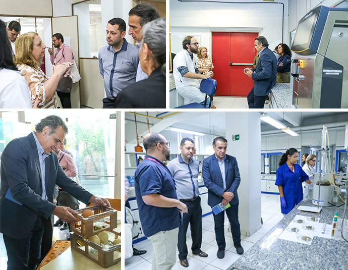 Hugo Leal e comitiva foram recebidos pela diretora do INT, Marcia Oliveira, que apresentou diversas pesquisas desenvolvidas pelo Instituto em setores como indústria de óleo e gás, agricultura, materiais e implantes ortopédicos impressos em 3D. No INT, visitaram ainda os laboratórios de Biocatálise, Bioprocessos e Bioprodutos (Labic); Análises Químicas Orgânicas e Inorgânicas (Laqoi), Tecnologia de Materiais Poliméricos (Lamap) e a Divisão de Design Industrial.