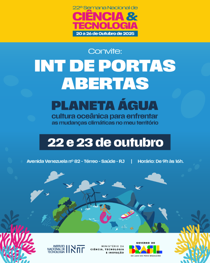O Instituto Nacional de Tecnologia (INT) está pronto para receber públicos de todas as idades, na próxima quarta e quinta-feira (22 e 23/10), no INT de Portas Abertas. Concebido para divulgar à sociedade, de maneira simples e didática, temas científicos desenvolvidos no Instituto, o evento integra o calendário da 22ª Semana Nacional de Ciência e Tecnologia, organizada pelo Ministério da Ciência, Tecnologia e Inovação (MCTI).