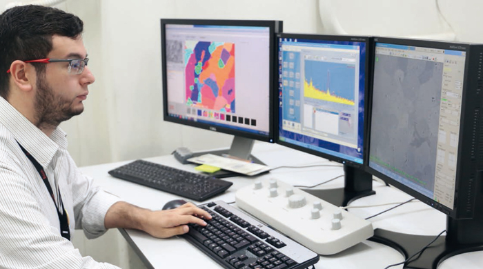 “O Alan contribui na metodologia de análise em microscopia eletrônica de varredura, inclusive em EBSD: análise cristalográfica por difração de elétrons retroespalhados, que não é coisa simples, mesmo para quem tem experiência em análise de materiais cristalinos, como metais, cerâmicos e minerais. Além disso, aprendeu a metodologia das análises por FIB: feixe focalizado de íons, também técnica moderna e avançada” – avalia Cássio Barbosa.