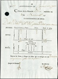 III - Guia de remessa correspondente à Administração dos Correios de Cusco (século XVIII). O documento é referente ao acervo dos Correios do Arquivo Colonial, do Arquivo Geral da Nação, sede dos Correios, localizado no distrito, província e departamento de Lima.