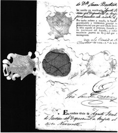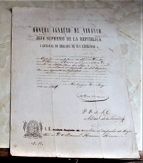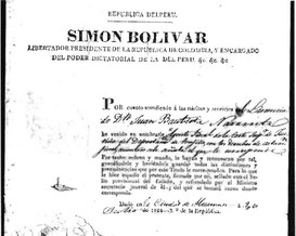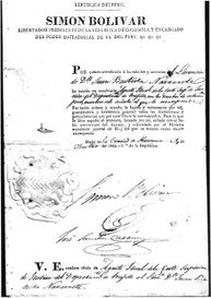 II - Nomeação de Agente Fiscal do Tribunal Superior de Justiça de Trujillo, assinada por Simón Bolívar, ano de 1824. O arquivo pertence ao fundo documental do Antigo Arquivo Histórico do Ministério da Fazenda, pertencente ao Arquivo Histórico Militar do Centro de Estudos Históricos Militares do Peru, localizado no distrito, província e departamento de Lima.