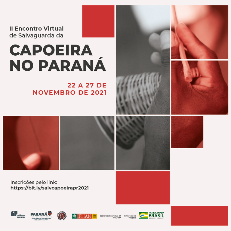 Capoeiristas e demais interessados em saber mais sobre Patrimônio Cultural estão convidados a participar do 2º Encontro Virtual de Salvaguarda da Capoeira no Paraná. O evento tem início no dia 22 de novembro, a partir das 19h, e vai até a tarde do dia 27.
